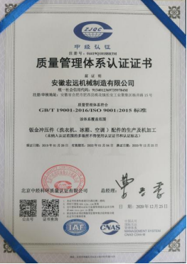 ? 安徽宏遠(yuǎn)機(jī)械制造有限公司(原合肥徐恒工貿(mào)有限公司),創(chuàng)建于2003年12月,現(xiàn)座落于肥西縣桃花鎮(zhèn)長安工業(yè)聚集區(qū)楊井路15號(hào)。目前公司占地面積30余畝,生產(chǎn)廠房兩棟,總建筑面積12000平米,綜合辦公樓一棟,建筑面積3000平米,公司2019年年產(chǎn)值2.45億元。我公司是以鈑金沖壓、加工為主的生產(chǎn)企業(yè),擁有完整的精加工檢驗(yàn)體系。通過近年的發(fā)展,公司已由原先單一的沖壓加工生產(chǎn)模式,轉(zhuǎn)化為模塊化、多業(yè)務(wù)鏈的汽車、家電零部件的制造企業(yè),目前公司產(chǎn)品品種已涉及家電,汽車零配件近百種。 公司擁有大、中、小型沖壓及焊接機(jī)械設(shè)備近100余臺(tái)套,其中630T-1200T大臺(tái)面架框液壓機(jī)(移動(dòng)工作框臺(tái)面)5臺(tái),氣動(dòng)100T-250T沖床20余臺(tái),63T壓力沖床10臺(tái),25T-40T壓力沖床20余臺(tái),315T液壓機(jī)4臺(tái),300T液壓機(jī)4臺(tái),日本松下350-500電焊機(jī)20臺(tái),電焊機(jī)、二氧化碳?xì)怏w保護(hù)焊機(jī)、氬弧焊機(jī)合計(jì)10臺(tái),大小自動(dòng)手動(dòng)剪板機(jī)5臺(tái),維護(hù)設(shè)備車床、銑床、刨床、磨床、搖臂轉(zhuǎn)床等11臺(tái),引進(jìn)進(jìn)口機(jī)械手臂,實(shí)現(xiàn)全自動(dòng)線生產(chǎn),引進(jìn)空調(diào)面板全自動(dòng)生產(chǎn)線和噴涂生產(chǎn)線可供大中型企業(yè)鈑金制品零部件配套產(chǎn)品的加工。 公司現(xiàn)有員工245余人,高級(jí)技術(shù)人員30人,高級(jí)管理人員15人,擁有精密的加工設(shè)備、科學(xué)的管理模式和優(yōu)秀的企業(yè)文化。高素質(zhì)的員工隊(duì)伍、精良的加工和檢測(cè)設(shè)備,為公司產(chǎn)品提供可靠基礎(chǔ),2019年產(chǎn)值為24500萬元,預(yù)計(jì)2020年產(chǎn)值26000萬元。本公司的主要上游客戶為合肥美的暖通有限公司、惠而浦(中國)電器有限公司、tcl家用電器有限公司、重慶美的有限公司、海爾電器(章丘)有限公司等,我司和上游客戶達(dá)成了常年的合作關(guān)系,并先后被評(píng)為上游客戶的優(yōu)質(zhì)供應(yīng)商。我司一直秉承誠信第一、以質(zhì)取勝為宗旨。真誠的歡迎各界客戶與宏遠(yuǎn)共同發(fā)展興旺。